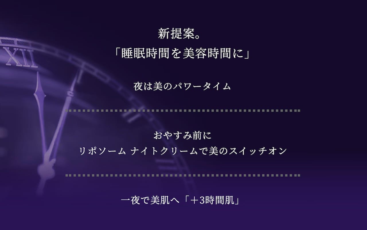 人生の3分の1は睡眠の時間。その時間を美容時間にできるのがリポソーム アドバンスト リペアクリームです。